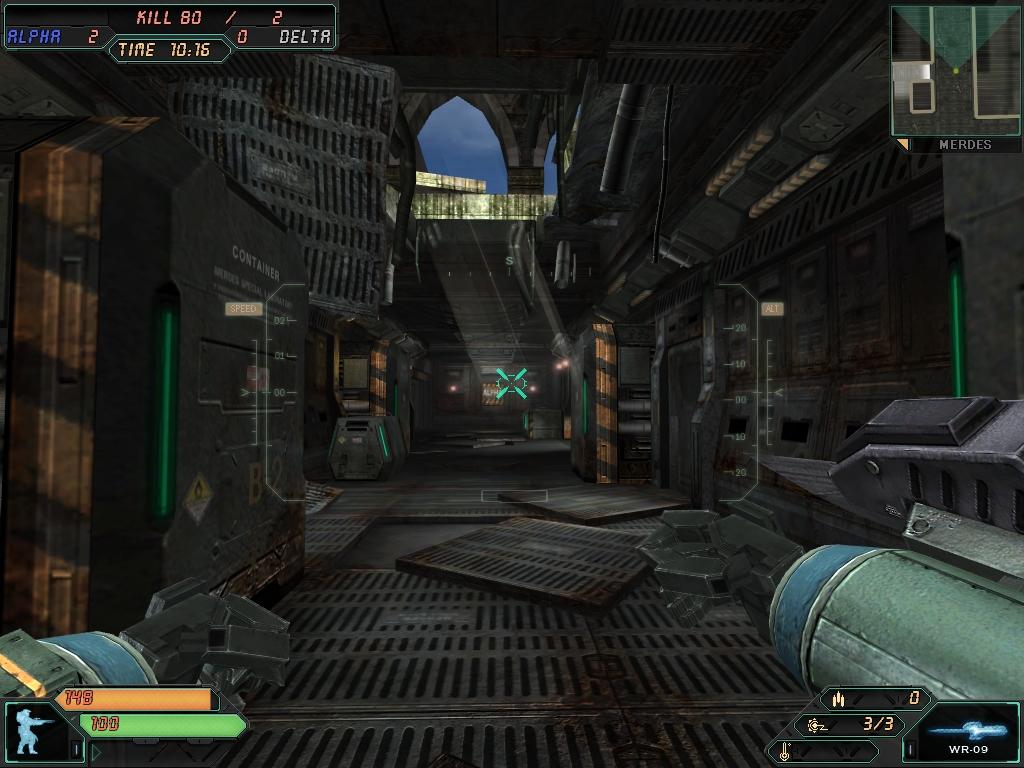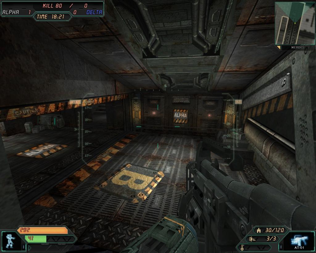 「メルデス」は荘厳な雰囲気を残すかつてのマス王国王城と、その地下にある先端科学研究所を舞台とした、複雑な地形が特徴マップです。プレイヤーは防御シールドに守られたマス王城の秘密をめぐり激しい戦いが繰り広げます。「メルデス」では「デスマッチ」「チームデスマッチ」「オペレーション」の3モードがプレイ可能です。防御シールドの破壊と防衛が勝負の鍵を握る、「メルデス」オペレーションをお楽しみください。