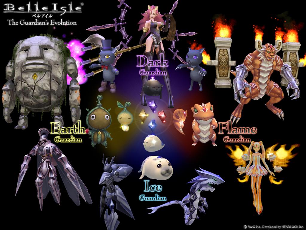 ガーディアンとは、プレイヤーと共に戦い、生産の手助けをしてくれる、パートナーのような存在です。闇のガーディアンは、現存する炎、氷、地属性の上位守護精霊にあたるガーディアンで、潜在能力などを含めて他のガーディアンよりも強靭です。
