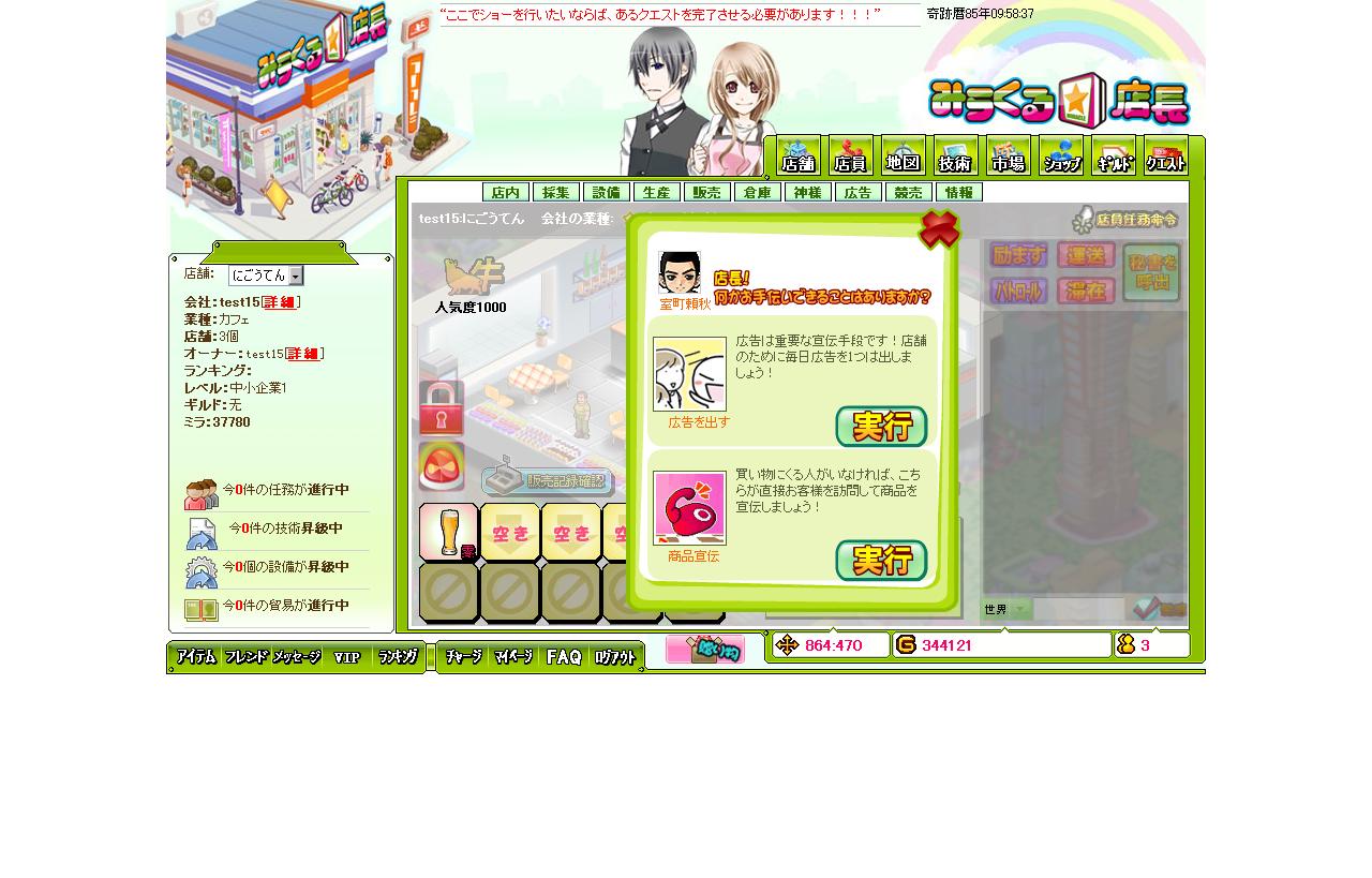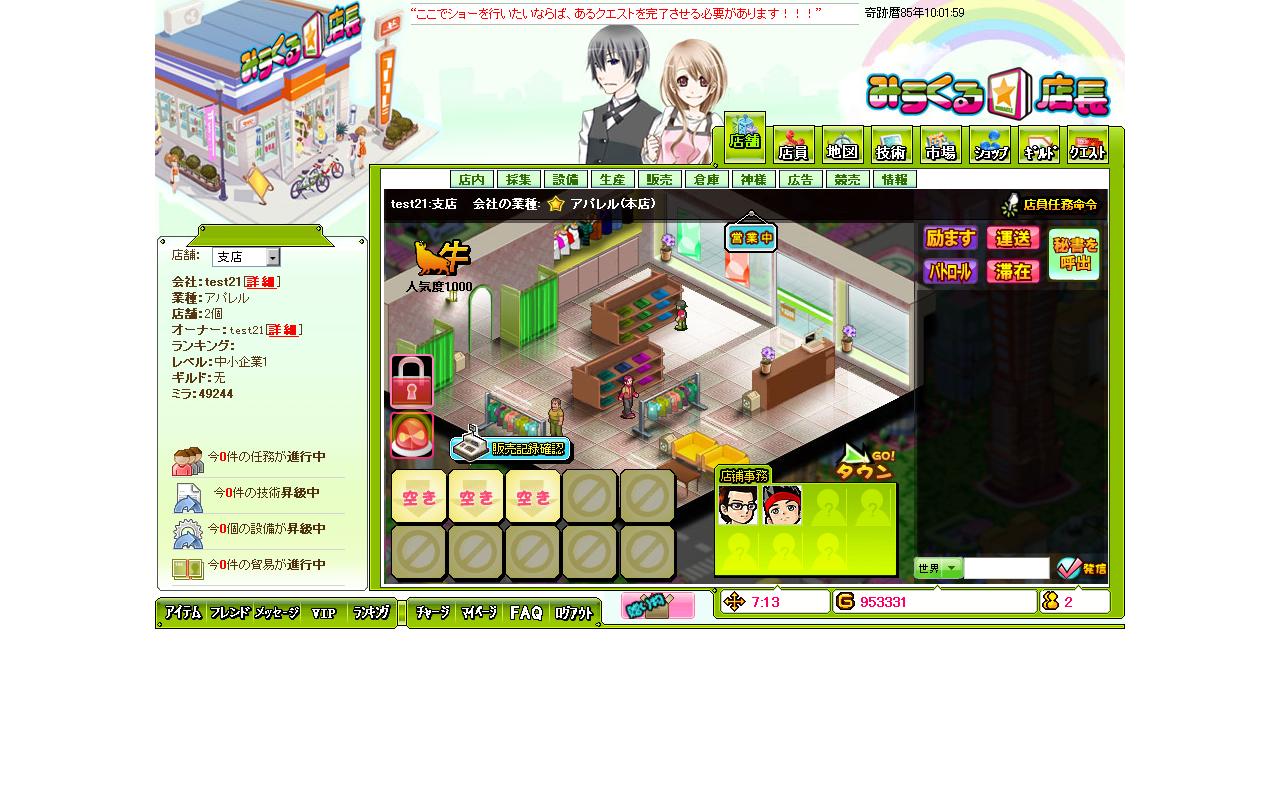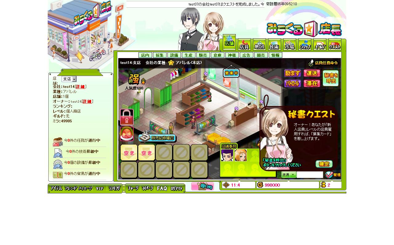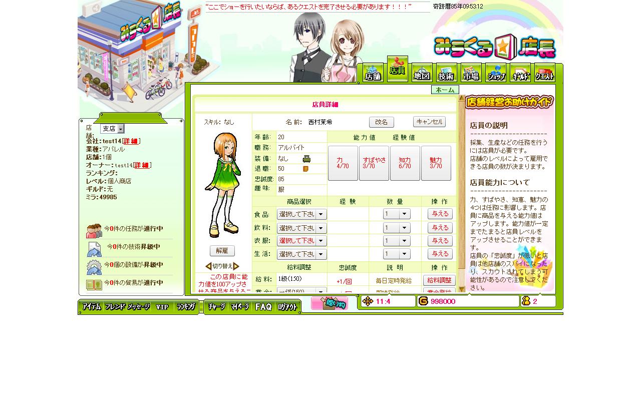 日本初!ショップ育成バトルブラウザゲーム「みらくる☆店長」