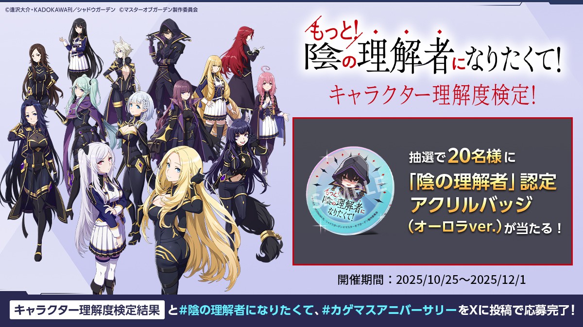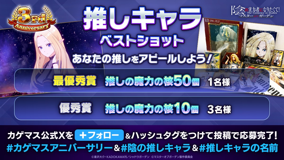 「陰の実力者になりたくて!マスターオブガーデン」は、2025年11月29日に3rd Anniversaryを迎える。