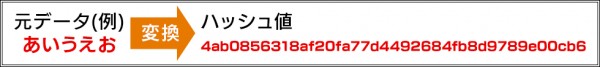 ハッシュ値とは簡単に言うと、元データを別の不規則な文字列に変換したものとなる。